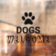 Noir et transparent chiens bienvenus autocollant ou enseigne avec une patte d'animal pour toute entreprise ; restaurant, vente au détail, magasin, café, salon, hôtel, boulangerie, etc.