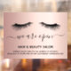 Un fond dégradé rose gold. Avec le texte : Nous sommes ouverts en noir écrit avec un style de lettrage manuscrit tendance avec fioritures. Personnalisez et ajoutez vos heures d'ouverture, site web. Décoré avec des cils noirs.