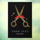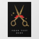 Changez facilement le texte ! Parties scintillant dorée ciseaux classique couleur noire combinaison. Elégant signe styliste cheveux avec un ruban rouge (élément photo).