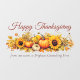 Cette vieille décalcomanie de fenêtre de fête d'entreprise de société présente un dessin vintage de citrouilles orange, de feuilles d'automne et de tournesols d'automne mignons. Impression nostalgique de Thanksgiving joyeux avec écriture marron du nom de votre entreprise et message professionnel personnalisé au dos pour les clients et les amis.