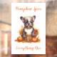 Cette accroche de fenêtre est montrée avec un joli imprimé d'art français bulldog pour l'automne, texte Citrouille Épices Tout Nice. Customisez cet objet ou achetez tel quel. Choisissez parmi plusieurs types de clings.
