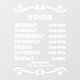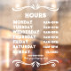 Faites en sorte que les clients puissent facilement savoir quand vos heures d'exploitation avec cette fenêtre d'heures d'exploitation élégante s'accrochent. Cet outil de création de fenêtre unique est entièrement personnalisable. Gardez-le tel qu'il est et changez les heures ou allez-y et faites-le votre propre design unique. Disponible en plusieurs tailles, vous pouvez l'utiliser pour afficher vos heures de magasin sur une fenêtre d'entrée ou utiliser des tailles plus petites sur une fenêtre de vitrine. Il y a différentes options pour l'arrière - plan aussi. Tout s'affiche lorsque vous cliquez sur l'image. Merci de vous être arrêté !