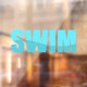 Typographie de Swim avec des vagues bleues.