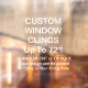 Clages personnalisés de fenêtres en vinyle - pour vitrines et portes en verre de magasins, cafés, restaurants, etc., et pour la promotion d'affaires et de la marque. Taille jusqu'à 72" x 52" ! Ces vinyles de serrage statique de 7,5 mm sont également amusants pour la maison, et pour les chambres d'enfants et les nurseries. Pas de tack - bâtons au verre avec électricité statique! Il vous suffit de vous éloigner pour repositionner/retirer.