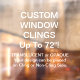 Clages personnalisés de fenêtres en vinyle - pour vitrines et portes en verre de magasins, cafés, restaurants, etc., et pour la promotion d'affaires et de la marque. Taille jusqu'à 72" x 52" ! Ces vinyles de serrage statique de 7,5 mm sont également amusants pour la maison, et pour les chambres d'enfants et les nurseries. Pas de tack - bâtons au verre avec électricité statique! Il vous suffit de vous éloigner pour repositionner/retirer.