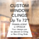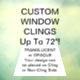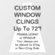 Clages personnalisés de fenêtres en vinyle - pour vitrines et portes en verre de magasins, cafés, restaurants, etc., et pour la promotion d'affaires et de la marque. Taille jusqu'à 72" x 52" ! Ces vinyles de serrage statique de 7,5 mm sont également amusants pour la maison, et pour les chambres d'enfants et les nurseries. Pas de tack - bâtons au verre avec électricité statique! Il vous suffit de vous éloigner pour repositionner/retirer.