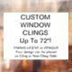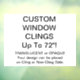 Clages personnalisés de fenêtres en vinyle - pour vitrines et portes en verre de magasins, cafés, restaurants, etc., et pour la promotion d'affaires et de la marque. Taille jusqu'à 72" x 52" ! Ces vinyles de serrage statique de 7,5 mm sont également amusants pour la maison, et pour les chambres d'enfants et les nurseries. Pas de tack - bâtons au verre avec électricité statique! Il vous suffit de vous éloigner pour repositionner/retirer.