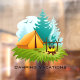Fenêtre Conception Camping Cling avec texte personnalisable, en différentes tailles et points de prix.