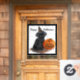 Une jolie photo vintage d'un chat habillé en sorcière avec un citrouille est présentée sur cette accroche de fenêtre d'Halloween. Avec un message, "Happy Halloween", cela améliorera vos fenêtres pour le jour férié. S'attache aux surfaces de verre électro-statique pour pouvoir l'enlever et l'utiliser à nouveau. Une façon simple et excellente de décorer votre maison pour Halloween !