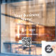 Un autocollant de fenêtre de branding de nom d'entreprise blanc et un adhésif de fenêtre présentant le nom de votre entreprise, slogan ou phrase d'accroche, numéro de téléphone, site web et code QR personnalisé. Un adhésif de vitrine personnalisé parfait pour les vitrines et les devantures de magasins. Parfait pour un propriétaire de magasin qui souhaite décorer sa vitrine avec le nom et la marque de son entreprise.
