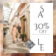 Un simple autocollant de fenêtre en vinyle de vente en magasin élégant avec un pourcentage de remise personnalisé en typographie classique dans une typographie minimaliste noir et blanc. Un panneau personnalisable parfait pour promouvoir votre entreprise.
