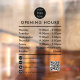 Un autocollant de fenêtre noir pour les heures d'ouverture et un adhésif de fenêtre présentant le logo de l'entreprise, le code QR, vos icônes de médias sociaux personnalisés et les coordonnées. Un adhésif de fenêtre personnalisé pour les heures d'ouverture parfait pour les vitrines et les enseignes de porte d'entrée. Parfait pour un propriétaire de magasin qui souhaite informer ses clients sur ses heures d'ouverture.