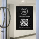 Panneau adhésif de fenêtre noir moderne pour votre entreprise avec votre code QR pour que les clients scannent pour afficher vos produits, services, prix ou autres informations. Ajoutez votre logo, nom d'entreprise, code QR, numéro de téléphone et adresse rue en typographie blanche simple.