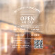 Moderne, élégant autocollant de fenêtre de porte d'heures d'ouverture de salon de restaurant de code QR. Ceci est pour la surface en verre.