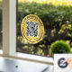 Autocollant Pour Fenêtre Code QR rond Cercle Nom de l'entreprise Fond doré