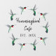 Joli cling de fenêtre pour les petites entreprises avec des colibris à gorge rubis mâles et femelles. Vous pouvez modifier le style de police, la taille et la couleur de la police en cliquant sur "Customiser plus loin".