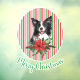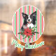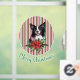 Fun couture de fenêtre couture pour maison ou d'affaires caractéristiques aquarelle Bordure Portrait de chien Collie avec poinsettia bouquet et arrière - plan rayé de Noël circulaire. Texte personnalisable en police verte.