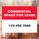 The top line of the display text is white and says Commercial Space for Lease. The bottom line has black display digits for a phone number. All text can be edited or deleted.