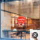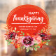 Fleurs bordeaux parmi des feuilles orange et vertes sur fond orange et toute inscription - nous affichons Joyeux Thanksgiving - sont représentées sur cet autocollant pour fenêtre - Choisissez la TAILLE et si vous voulez l'autocollant sur l'avant ou l'arrière