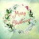 Couronne de Noël « Merry Christmas » en feuillage de pin et baies rouges, texte et couleurs à personnaliser. Tous les éléments sont modifiables et amovibles.