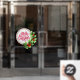 Un décor de fenêtre en forme de couronne à rayures de canne à bonbon avec du houx et des baies et « Joyeux Noël » est présenté sur ce décor de fenêtre - Choisissez TOUTES LES TAILLES et **adhésif avant ou arrière. (La taille indiquée est de 24 " x 24 ", mais peut être faite plus grande ou plus petite.)