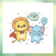 Une illustration adorable de nursery mettant en vedette un petit lion courageux dans une cape de super-héros rouge et un éléphant bleu doux tenant un ballon en forme d'étoile. Ce design de dessin animé joyeux et minimaliste sur un fond blanc propre est parfait pour la décoration de chambre d'enfants, les cadeaux de baby shower et les accessoires de nursery.