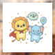 Autocollant Pour Fenêtre Dessin animé de lion et d'éléphant amis super-héro