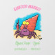 Cette caricature joyeuse de crabe ermite est un violet et orange clair et coloré. Emmène-moi à la mer !