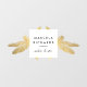 Une paire élégante et inattendue de libellules en or faux sortent de derrière une boîte stylisée portant votre nom ou le nom de votre entreprise sur ce sticker de fenêtre personnalisé. Une identité magnifique pour les salons, les spas, les magasins de beauté, les boutiques de mode, les produits de luxe et plus encore. Art et design © 1201AM Design Studio | www.1201am.com
