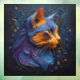 Un portrait captivant qui capte la beauté de la tête d'un chat en regardant dans le style. Cette oeuvre abstraite présente des lignes en relief dans les tons bleu, orange et violet, dressées contre un arrière - plan bleu foncé. Découvrez le mystère de ce regard félin, habillé d'éléments de couleur relief subtils.