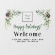 Un fond transparent et un texte noir. Personnalisez et ajoutez votre logo. Texte : Joyeuses Fêtes ! et Bienvenue. Décoré de brindilles et de cônes de pin.