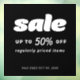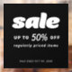 Personnalisez toutes les couleurs et le texte sous "Soldes". Le graphique "Soldes" peut être redimensionné ou modifié en couleur, ou supprimé pour ajouter votre propre texte. Vous pouvez également ajouter une couleur de fond et choisir l'opacité.