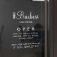 Moderne élégant tendance barbier coiffeur salon de coiffure pour hommes enseigne heures d'ouverture signalisation fenêtre adhésif avec typographie blanche gras script avec ciseaux et poteau. ++++++++++++ Convient pour salon de coiffure, salon pour hommes, coiffeur professionnel. +++++++++++++++++++++ Facile à personnaliser avec le nom de votre salon ou coiffeur, appelez pour rendez-vous numéro de téléphone, et votre texte.