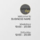 Créez votre propre décoration sur mesure avec un logo professionnel personnalisé pour votre entreprise ! Ce modèle de design est un panneau de bienvenue pour les clients affichant vos heures d'ouverture que vous pouvez adapter à vos besoins. Il comporte un logo d'entreprise à remplacer que vous pouvez personnaliser pour améliorer votre espace de travail et votre marketing visuel pour les clients, les collaborateurs et le personnel. Le texte personnalisé est en noir.