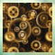 Sans joint, métal, laiton, or engrenages sur arrière - plan foncé rouillé. Style Steampunk.