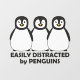 Facilement distrait par les pingouins. Trois mignonnes et adorables pingouins à manchots dessin d'illustration graphique en noir et blanc. Drôle à dire/Slogan pour les amateurs de pingouins.