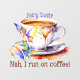 Coupe de café aquarelle avec une fée assise sur la soucoupe. Qui court sur la poussière de fée ? Pas des fées, pas toi ! Nous courons tous avec du café !