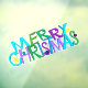 This window cling has the text Merry Christmas in festive colourful letters of blues, green, and purples with yellow star accents.