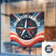 4 juillet Fier d'être américain Fête de l'indépendance autocollant de fenêtre avec des couleurs patriotiques rouge, blanc et bleu. Ces autocollants de fenêtre transforment votre verre en beaux accents décoratifs uniques. Utilisez-le pour les promotions ou les décorations de petites entreprises, ils ne se démodent jamais. Vous pouvez utiliser les options opaques ou transparentes fournies par Zazzle. Le texte circulaire peut être personnalisé.
