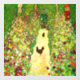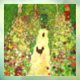 Cling de fenêtre avec peinture à l’huile de Gustav Klimt Jardin avec coqs (1917). Deux poulets bruns se dressent sur un chemin de jardin. De belles fleurs roses, rouges et blanches fleurissent le long du chemin. Un grand cadeau pour les amateurs d'art Art Nouveau et autrichien.