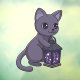 Cute black cat is holding a lantern full of swirling stars.