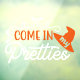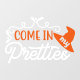 Ce sticker de fenêtre amusant pour Halloween comporte une image avec le texte "Venez Mes Jolies" et un chapeau de sorcière. Les couleurs sont modifiables. Parfait pour la saison des fêtes.
