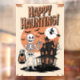 Plongez dans l'atmosphère nostalgique d'Halloween avec ce design vintage, mettant en scène un squelette jovial tenant une lanterne citrouille, accompagné d'une maison hantée sous une pleine lune. Idéal pour des décorations ou des invitations sur le thème d'Halloween, ce visuel est parfait pour apporter une touche rétro à vos célébrations effrayantes. Affichez votre esprit d'Halloween avec style et humour grâce à ce design original !