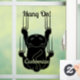 Chat noir traînant des griffes sur le mur accroché pour une vie chère à customiser, à personnaliser en changeant à votre nom sur toute couleur arrière - plan