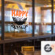 Ce joyeux cling de fenêtre d'Halloween présente l'image texte "Happy Halloween" avec chauve-souris éffrayante, toile d'araignée, et pierres tombales de cimetière. Les couleurs sont modifiables. Parfait pour la saison des fêtes.