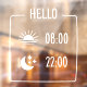 Dites bonjour à vos clients avec cet adhésif de vitrine minimaliste et ludique ! Avec des icônes de lever de soleil et de lune et des heures d'ouverture modifiables, c'est parfait pour les cafés branchés ou tout espace détendu avec une personnalité douce. Personnalisable et prêt à vibrer ☕🌙