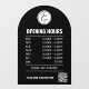 Heures d'ouverture avec code QR et logo d'entreprise et arche noire Autocollant pour fenêtre