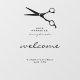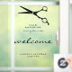 Autocollant pour fenêtre transparent Heures d'ouverture Bienvenue Salon de coiffure. Articles assortis disponibles.