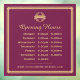Affichez vos heures d'ouverture à vos clients avec cet autocollant de fenêtre élégant. Un design d'inspiration vintage avec une typographie classique et une simple bordure art déco. Ce modèle professionnel est personnalisé avec votre logo d'entreprise, vos heures d'ouverture et votre site web. Il offre un texte entièrement personnalisable pour s'adapter à l'image de votre entreprise. Vous pouvez également modifier la couleur de fond à l'aide de l'outil d'édition de design. Ce design adaptable est idéal pour divers établissements, magasins, bureaux ou services, notamment les restaurants, cafés, salons, boutiques, services de nettoyage à sec, etc. ! Couleurs imprimées : prune rose profond et couleur or. Si vous souhaitez que votre logo soit coordonné avec la couleur de type or, le code de couleur Hex est #DEBE79.