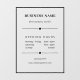 Donnez à votre vitrine un aspect professionnel avec un cadre noir pour bureau professionnel avec une fenêtre adhésive pour les heures d'ouverture sur fond transparent, conçu pour rendre l'information de votre entreprise claire et attrayante. Ces adhésifs de fenêtre personnalisés sont parfaits pour les fenêtres d'information des petites entreprises, des bureaux professionnels ou des magasins. Idéal pour les enseignes de porte de bureau telles que les agences immobilières, les studios de photographie, les salons de coiffure, les boutiques de mode, les salons de maquillage, les salles d'attente des médecins, les cliniques dentaires et les autocollants de porte de bureau. Améliorez la visibilité et le professionnalisme de votre entreprise avec ces autocollants de fenêtre personnalisés.